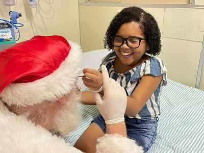 No Natal, a solidariedade e as boas ações fazem parte da rotina de muita gente. Afinal, a festa foi criada há milhares de anos para homenagear Jesus Cristo, símbolo maior da solidariedade na civilização ocidental. Foi com esse espírito solidário que um Papai Noel simpático e sorridente visitou o Instituto Nacional de Saúde da Mulher, da Criança e do Adolescente Fernandes Figueira (IFF/Fiocruz), no último dia 8 de dezembro. Emocionado por estar de volta depois de três anos, por conta da pandemia do Coronavírus, o “bom velhinho” distribuiu presentes para os pacientes e seus acompanhantes, além de fazer a alegria de familiares e trabalhadores posando para fotos.