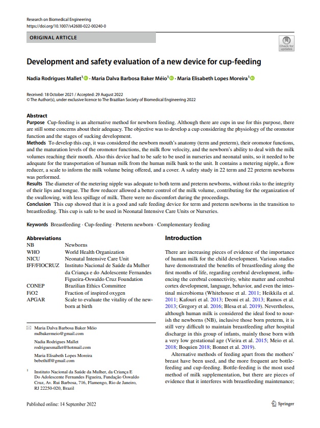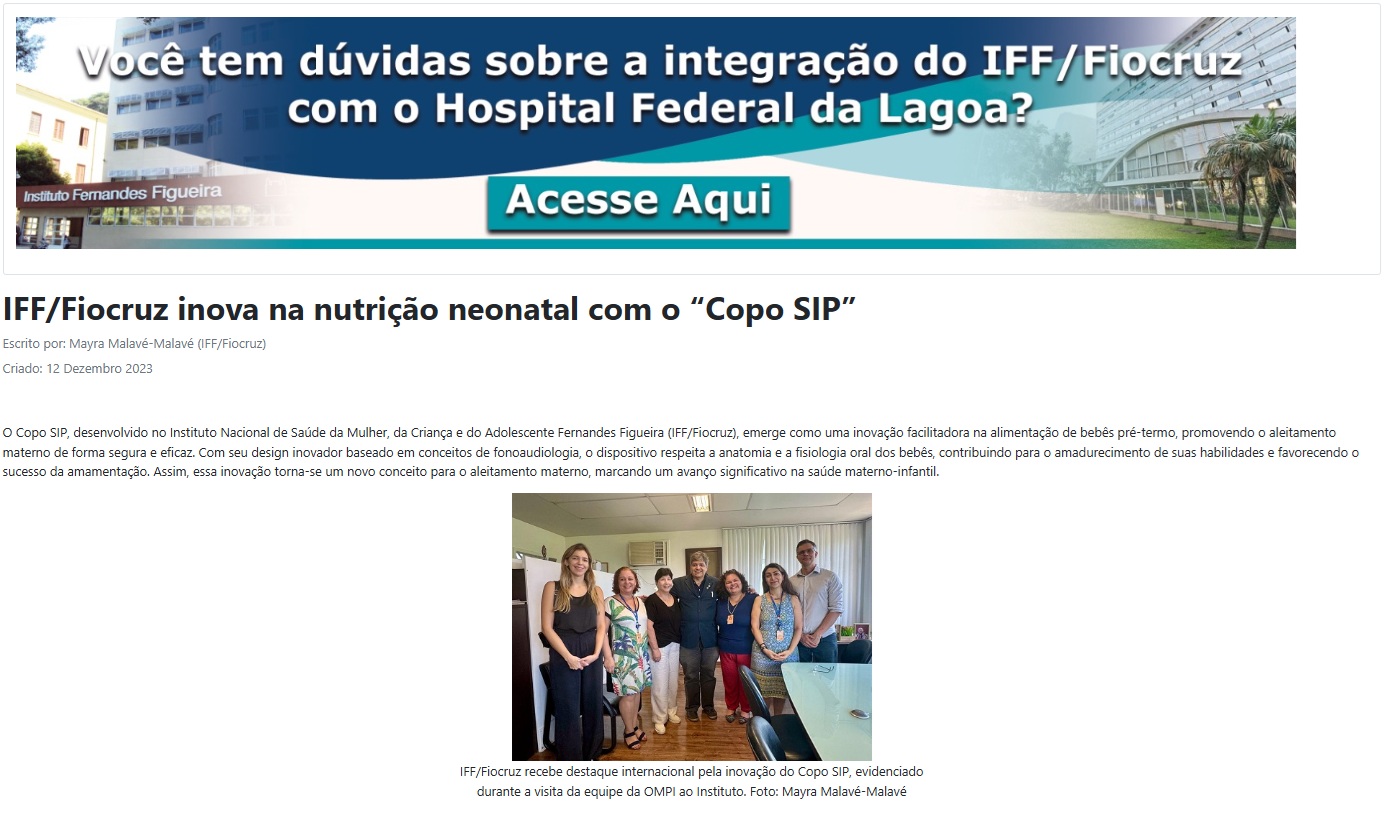 Vídeo “Copo SIP – um novo conceito para o aleitamento materno” produzido pelo NIT-IFF/Fiocruz