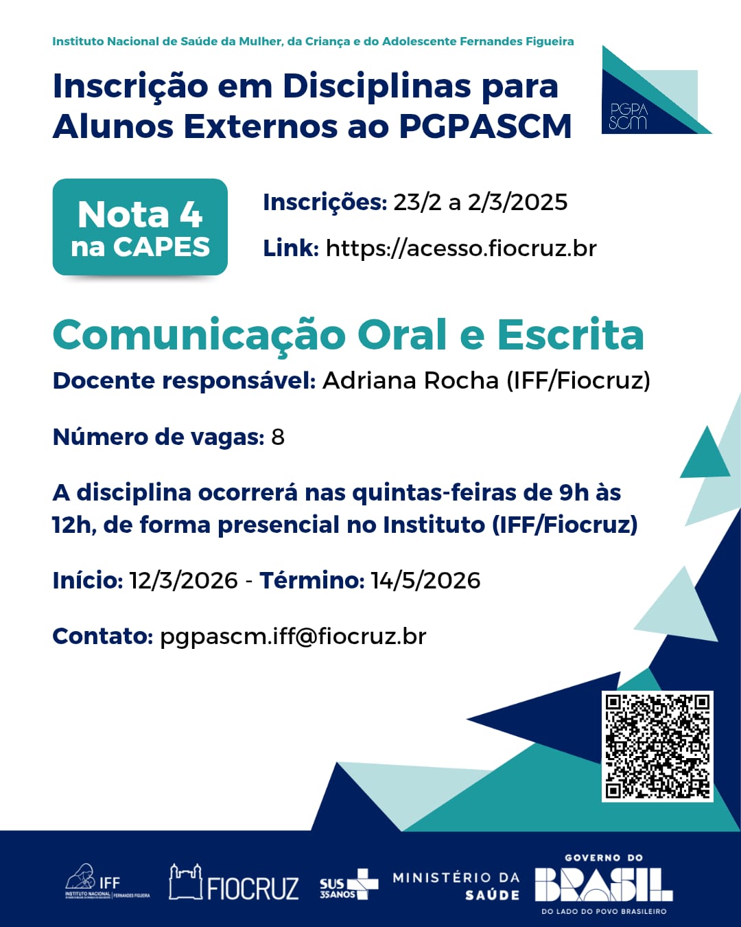 Conheça mais sobre o PPGSCM/IFF/Fiocruz: https://www.iff.fiocruz.br/index.php/pt/ppgpascm-apresentacao